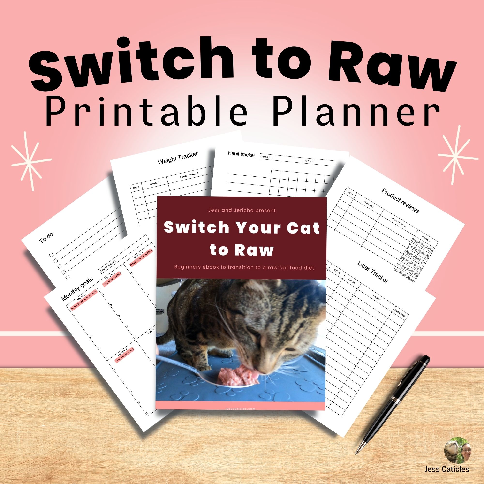 Or if you prefer to pay for the convenience of having everything in one place plus planners, trackers, and cheat sheets to fast-track your success, check out my Switch Your Cat to Raw eBook - available as a printable and digital planner